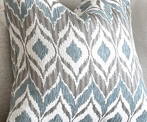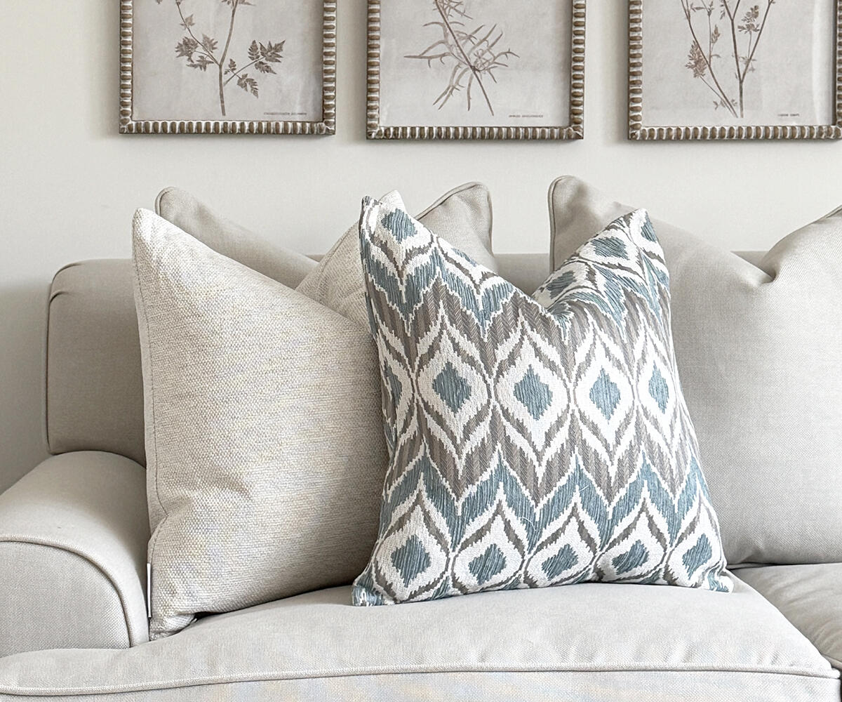 Elevate your seating space with this delightful cushion in a striking Ikat pattern. Comes with luxury feather filler.