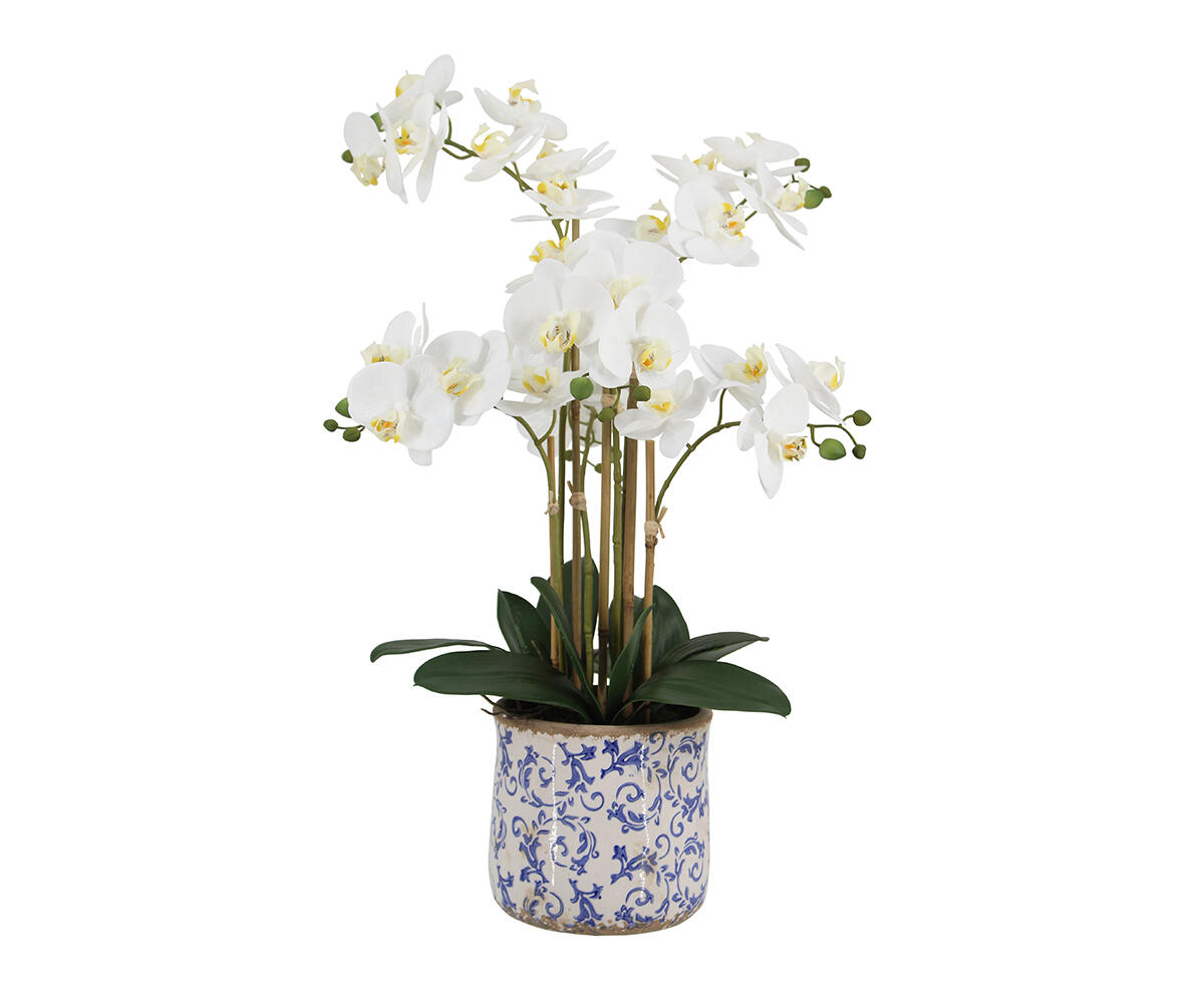 Large Real Touch Orchid in Blue and White Pot